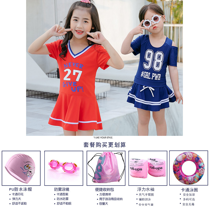 Children's swimsuit girls split middle big child student sports swimsuit girls baby princess skirt swimsuit set
