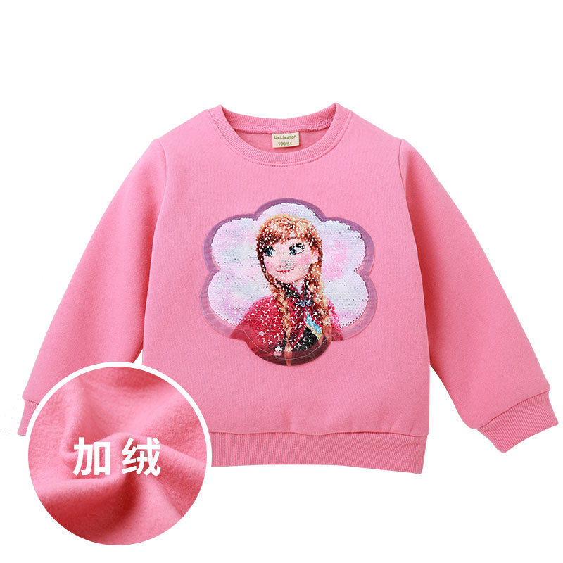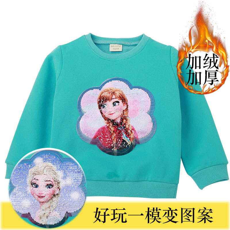 Girls sequins color change plus fleece thick cotton T children's foreign pie can flip Aisha autumn winter children's fashion tops