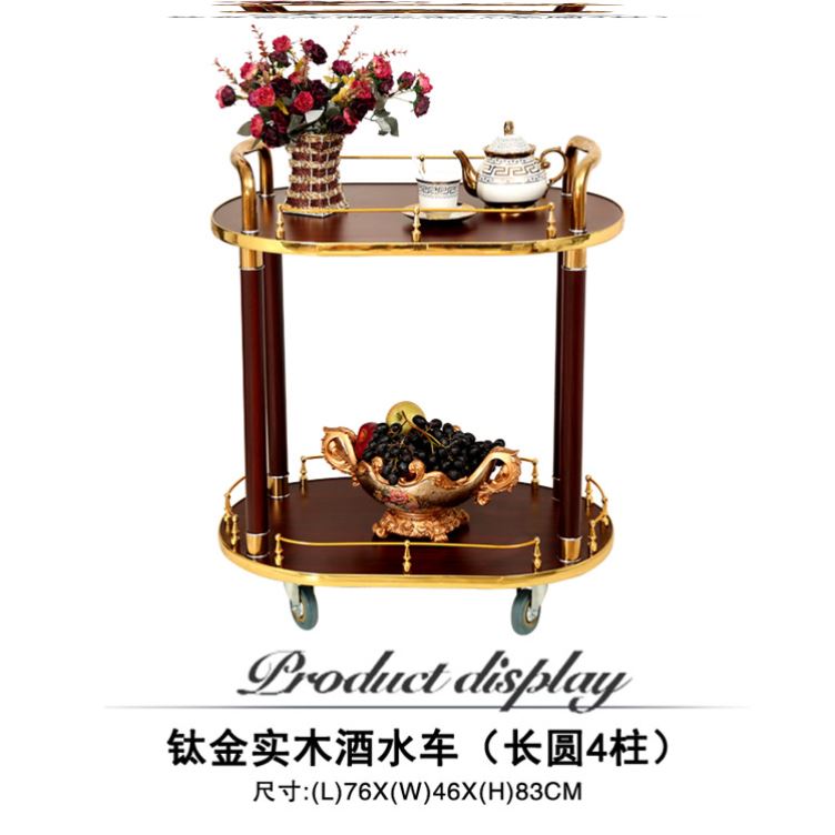 Three-layer titanium alloy wine truck with armrests Three-layer titanium alloy wine truck wine red dessert truck log color dessert truck hardcover version of solid wood drink truck double-layer solid wood drink truck titanium alloy large hot pot truck silver large hot pot