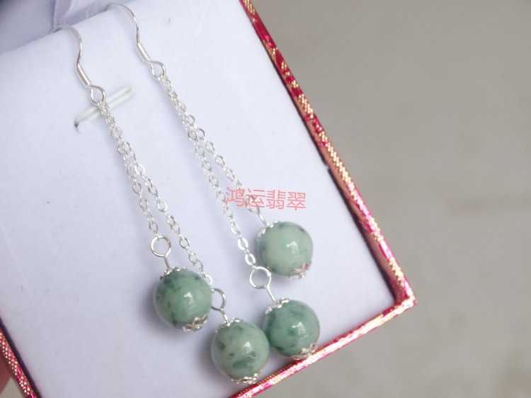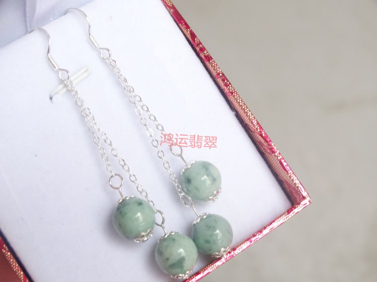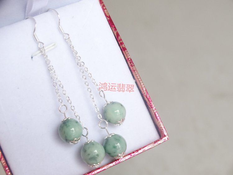 Xianyun Natural Emerald A Floating Jade Ear Fall Pure Silver Can Not Sensitive Ear Ring Temperature Fixing Yu Ear Line