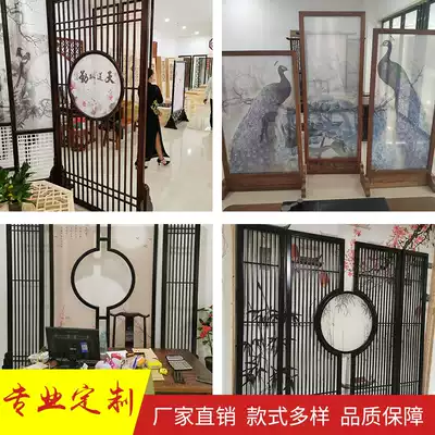 New Chinese style solid wood screen partition living room entrance hollow cover decoration antique door and window insert screen partition customization