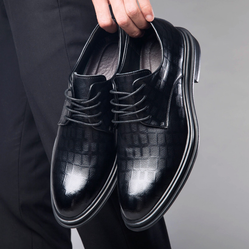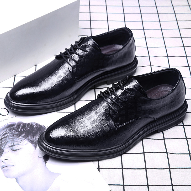 Mulinsen Men's Business Formal Leather Shoes Plaid Leather Korean Casual British Groom Wedding Shoes Groomsmen Men's Shoes