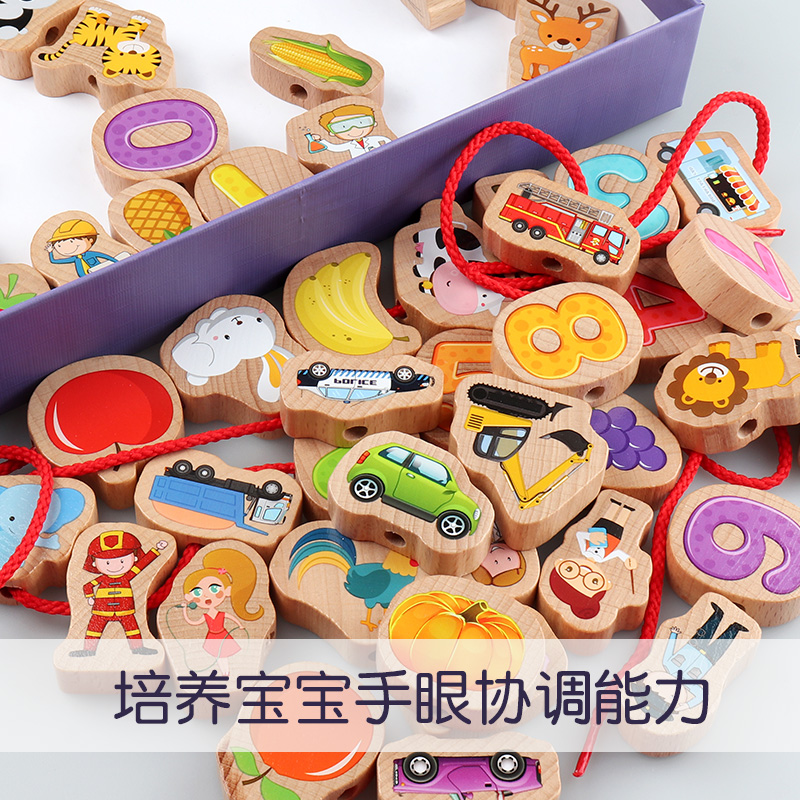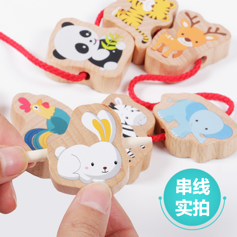 Hooded Young Children Building Blocks Wearing Rope Strings Beads Around Pearl Early Teaching Aids Hand Eye Coordination Special Force Training Puzzle Toys