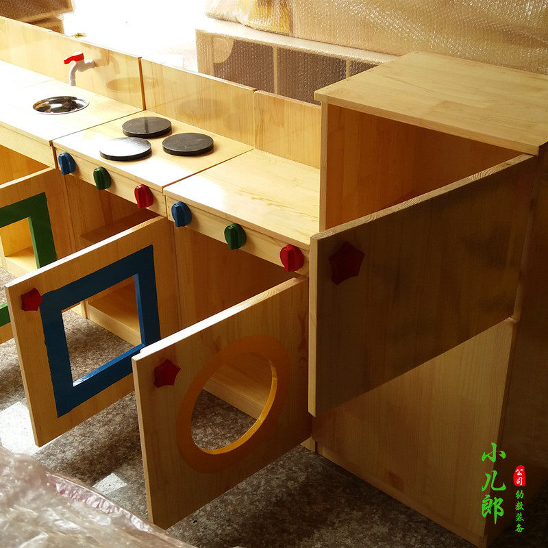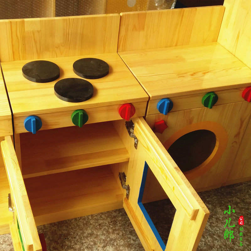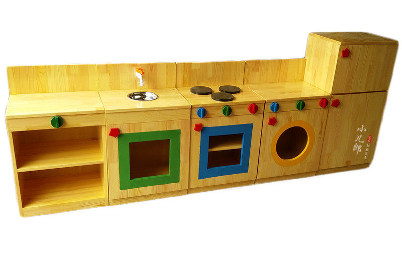 Kindergarten solid wood toy cabinet Kitchen combination five-piece children's wine toy simulation kitchen storage cabinet