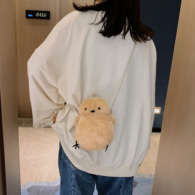 Cute animal plush bag women's bag 2021 new fashion Korean version of the popular joker ins chain shoulder messenger bag