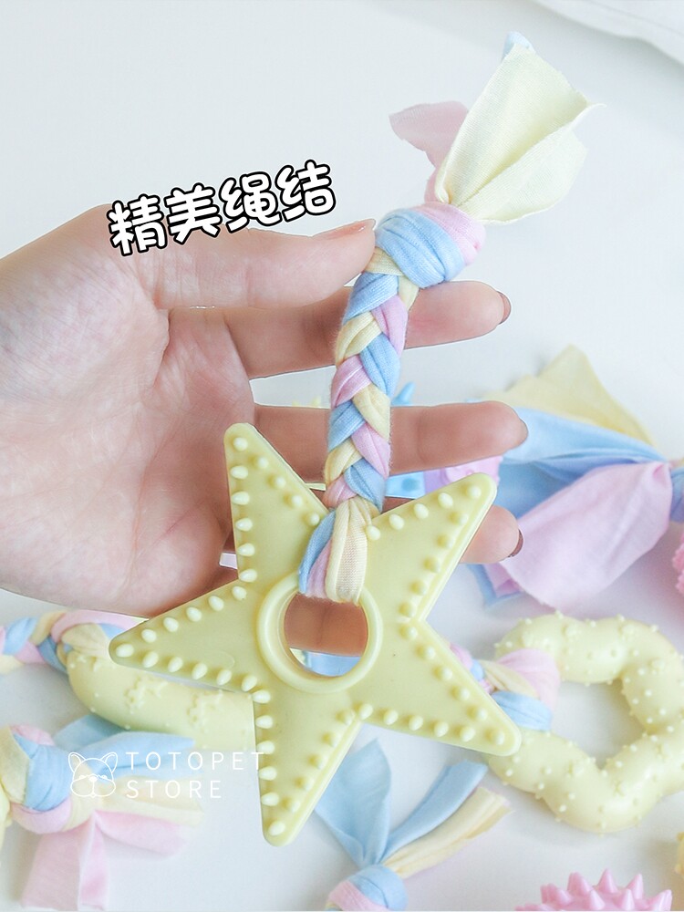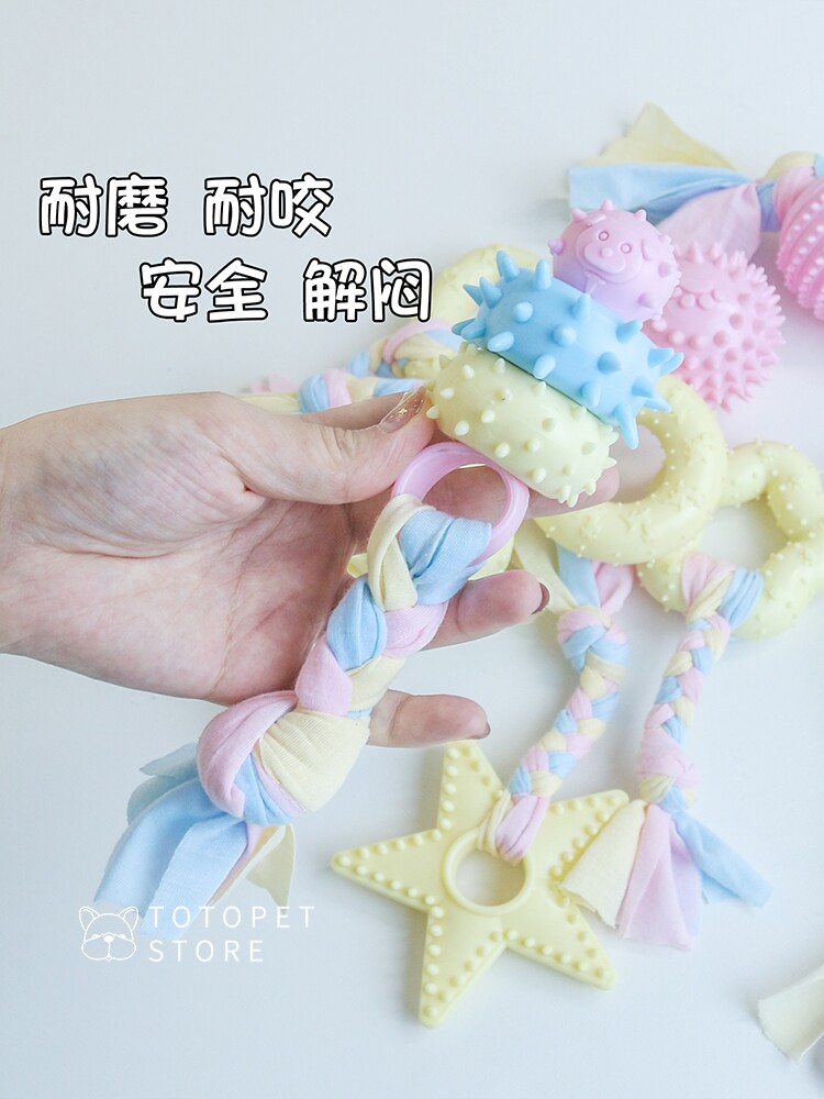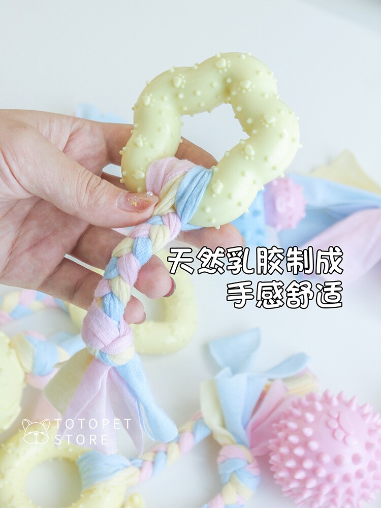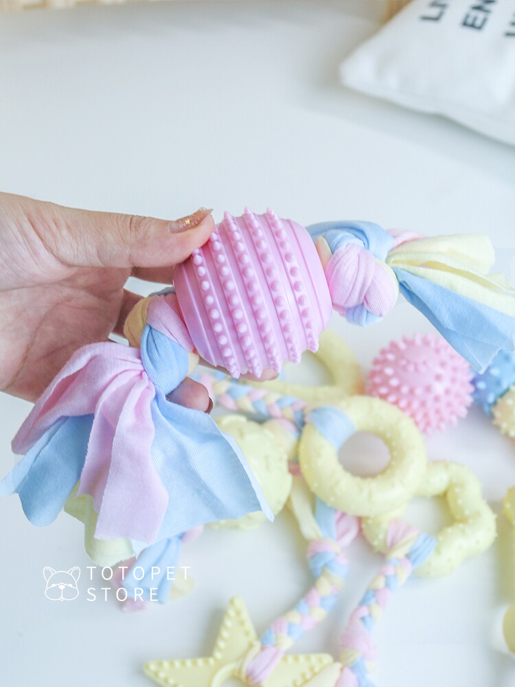 Sounding small black tire with thorny bone 12x6cm (random color) point ball cloth strip 19x6cm (random color) three-color cloth rope 20x5cm (random color) stick