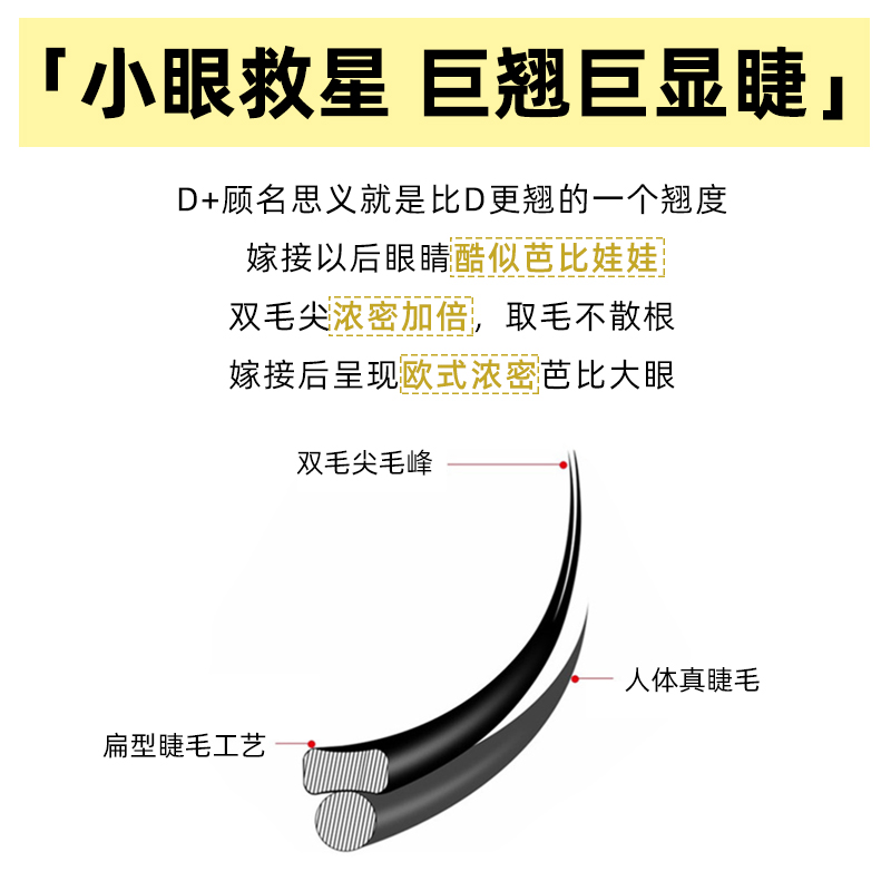 D + Barbie teething graft eyelash single root double tip matt black flat hair soft wind