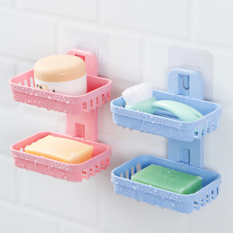 Creative punch-free soap box toilet drain wall-mounted soap box bathroom rack suction cup double-layer soap rack