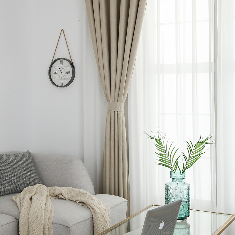 Floor-to-ceiling curtains Nordic simple modern solid color bedroom shading thickened cotton and linen Japanese curtain cloth custom finished products