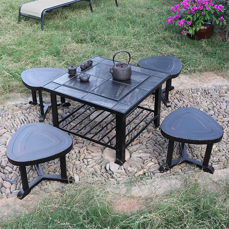 Outdoor BBQ Table Garden BBQ Outdoor Square Rainproof Ceramic Table Fashion Casual Charcoal BBQ Grill