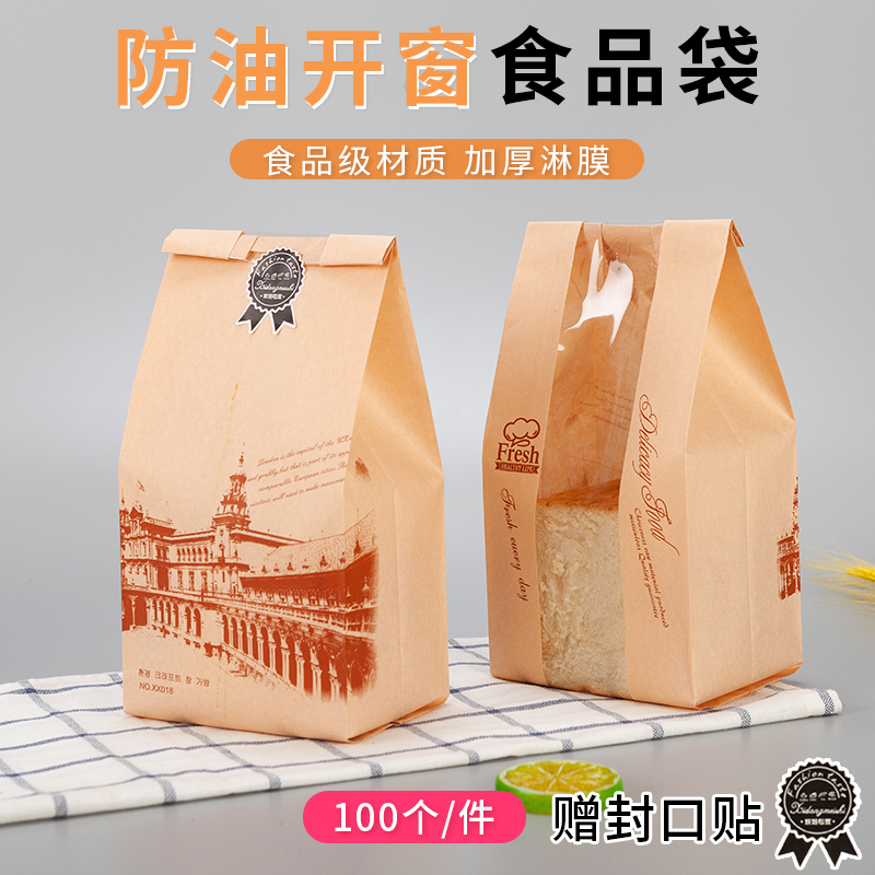 Small toast bag sliced 3-4 slices of bread packaging bag kraft paper bag custom window lamination custom 100