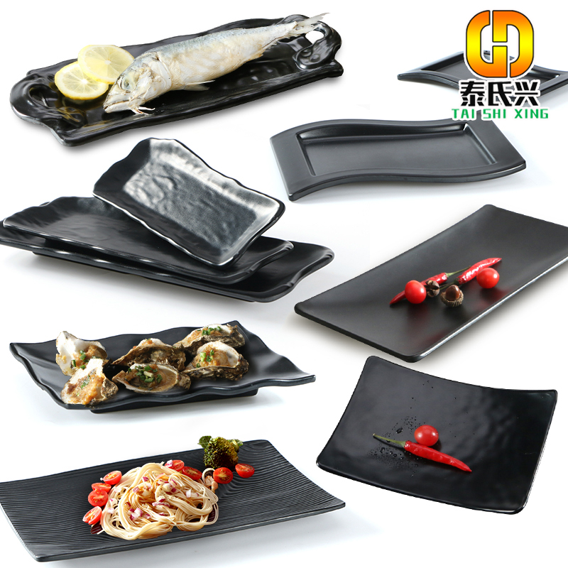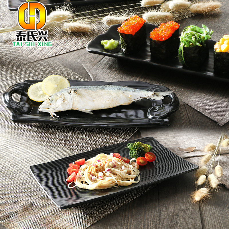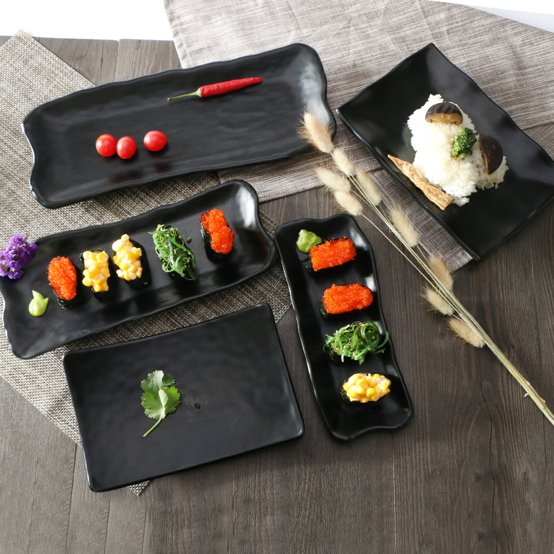 Grilled Meat Sushi Dishes A5 Black Imitation Porcelain Rectangular Dishes Day Style Cuisine snack Barbecue Dish melamine cutlery