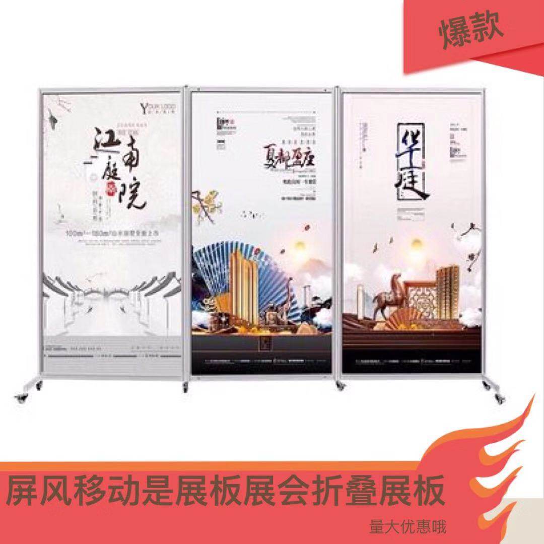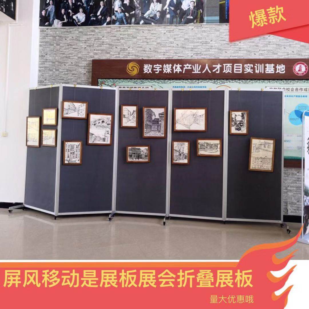 Customized Recruitment Advertising aluminum alloy exhibition board 360-degree portable folding belt wheel mobile book painting work display board