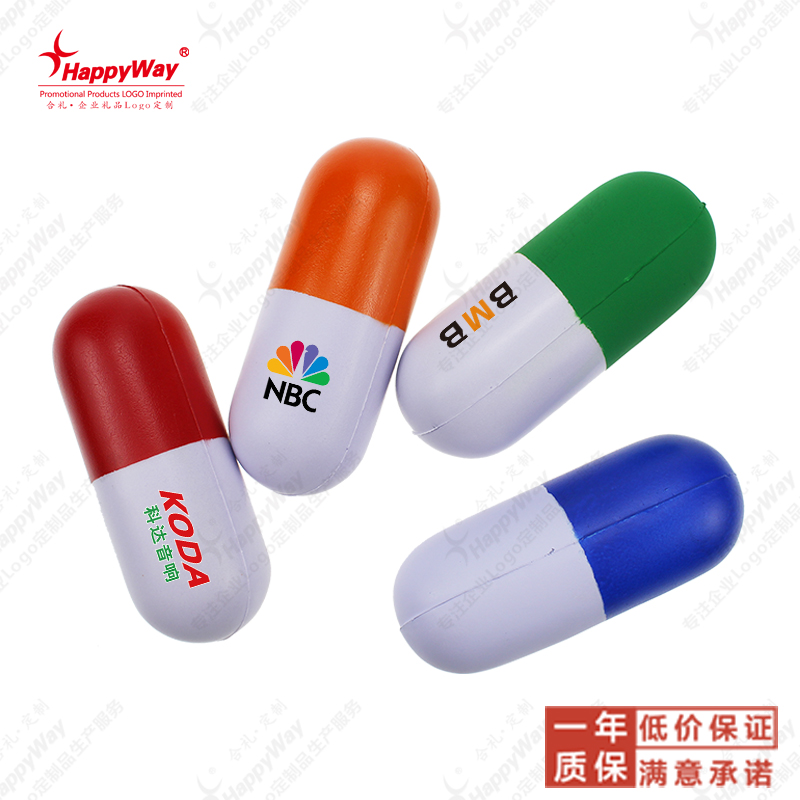 Pill shape stress ball custom logo corporate exhibition advertising gift company event promotion small gift