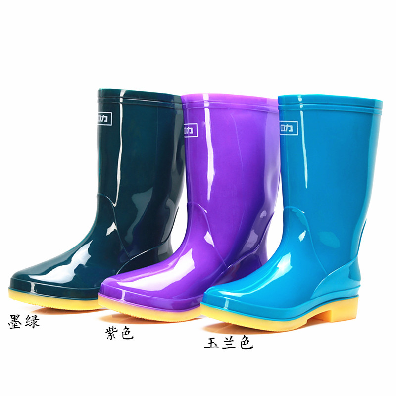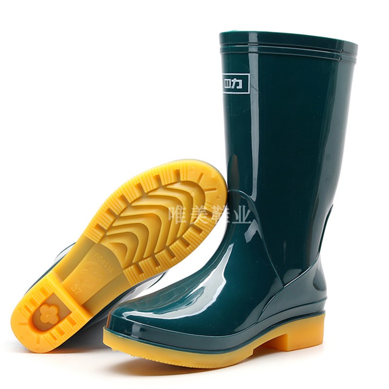 Rain Boots Rain Shoes Plus Suede Female Midbarrel Ink Green Rain Shoes Water Shoes Bull Gluten Bottom Half High Cylinder Rubber Boots Women's Water Boots Warm Shoes
