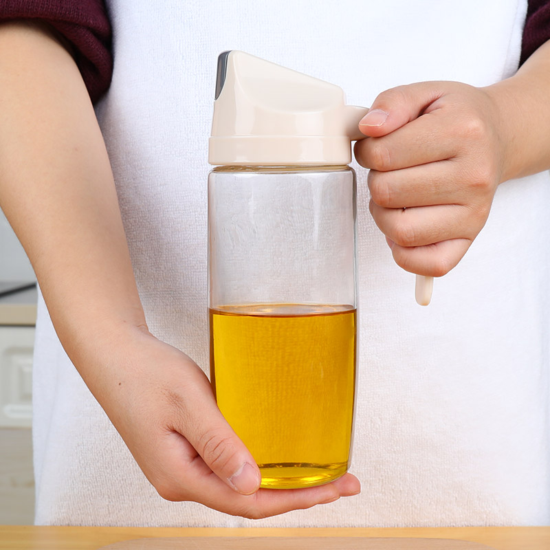 Leak-proof glass oil pot Automatic opening and closing oil bottle Kitchen household oil vinegar tank Soy sauce bottle Seasoning bottle Oil tank pour oil bottle