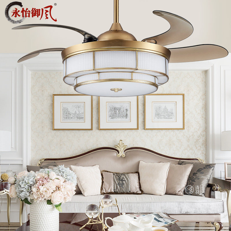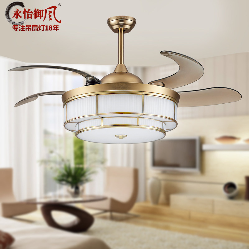 Yongyi fan fan lamp Light luxury copper fan chandelier bedroom stealth ceiling lamp 52 inches 9083