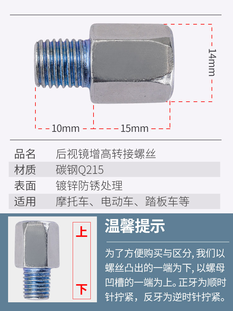 Electric motorcycle mirror conversion screw Electric car rearview mirror increased 10mm to 8mm positive wire adapter