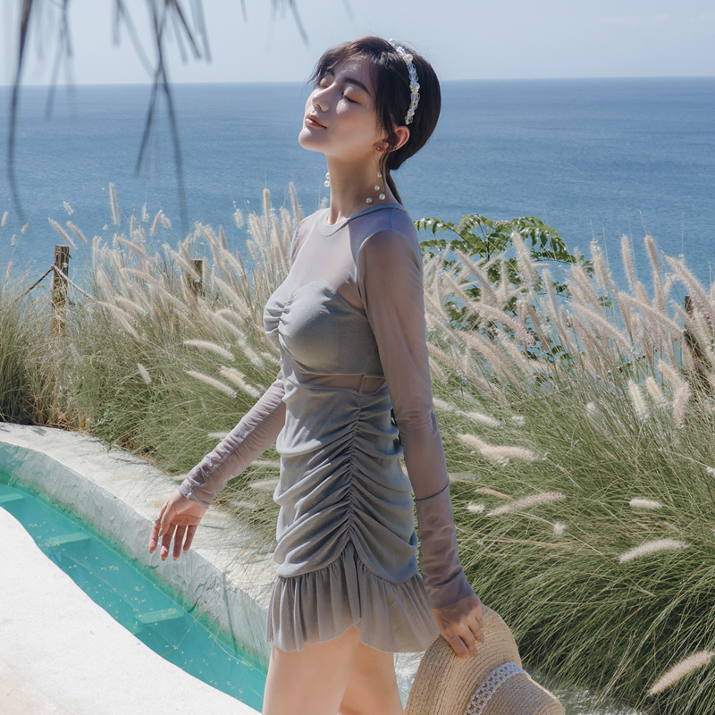 Bedis Swimsuit Women 2019 New Korean In Style Thin Holiday Hot Spring One-Piece Dress Conservative Belly Cover Swimsuit