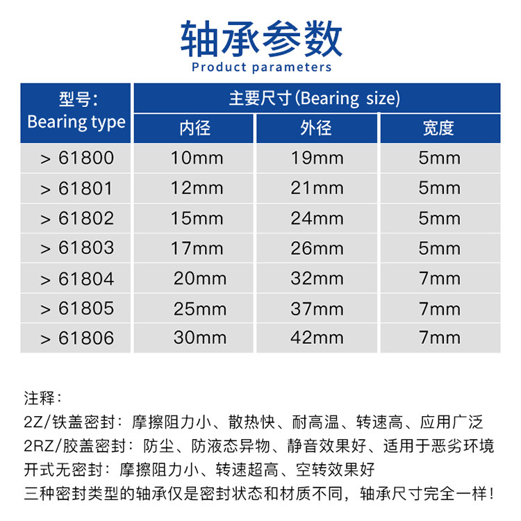 HRB 6800-ZZ (iron cover seal) HRB 6800-2RZ (plastic cover seal) HRB 6801-ZZ (iron cover seal) HRB 6801
