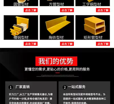 Glass fiber pultruded profile square tube round tube I-beam sign pile-shaped purlin road power factory guardrail fence