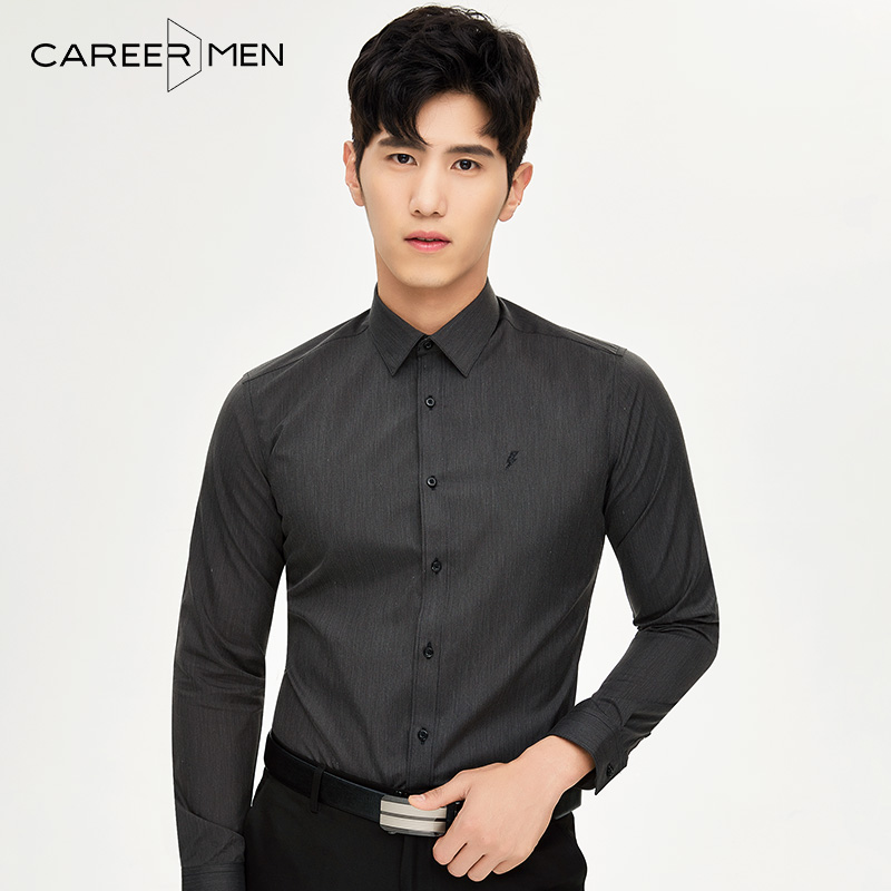 Professional door men's shirt long-sleeved business stripes wrinkle-resistant slim young youth new casual ironing black shirt tide
