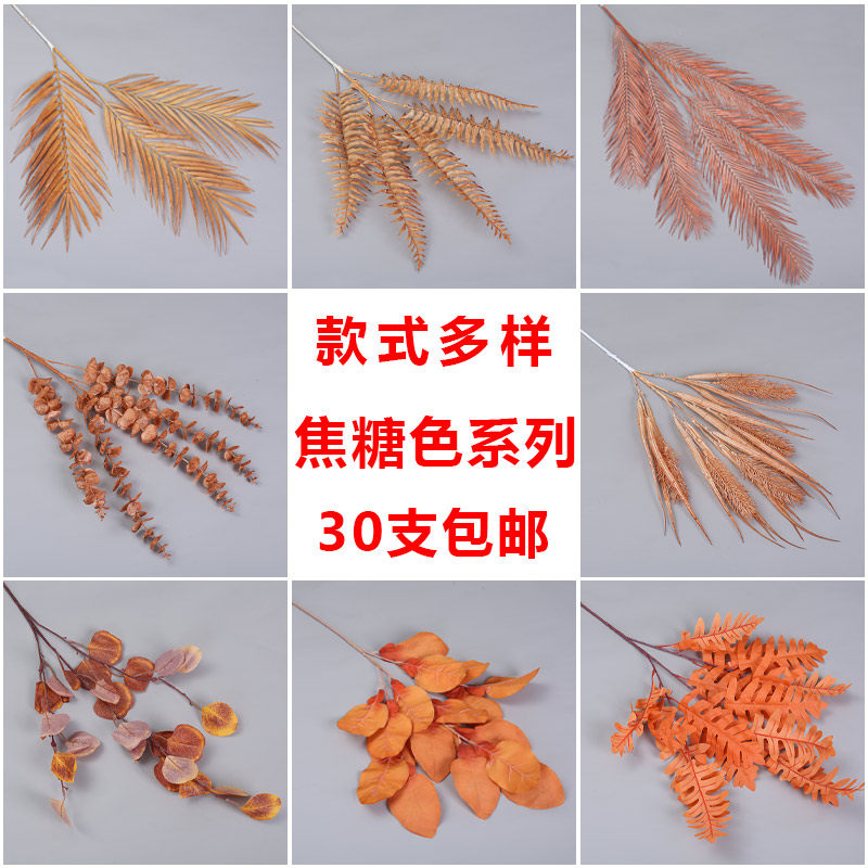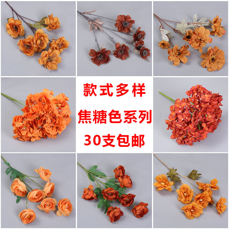 Wedding autumn color caramel color simulation flower material rose peony mist wedding hall decoration ceiling road lead background flower arrangement