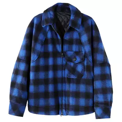 Deep blue tone cotton shirt shirt style wool loose big profile lattice wool jacket cotton coat 69486