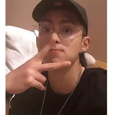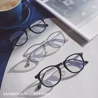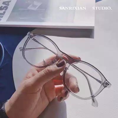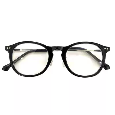 Niche literature and art fresh wind black frame glasses rice nails metal legs round rimmed glasses anti blue light flat lens plain face