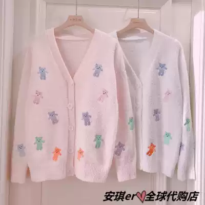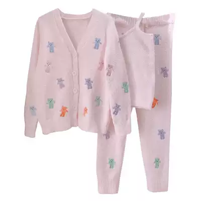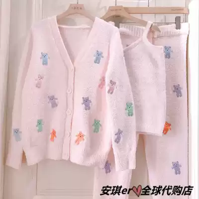 Japan you gelato pique cute soft embroidered strawberry bear winter three-piece home wear pajamas