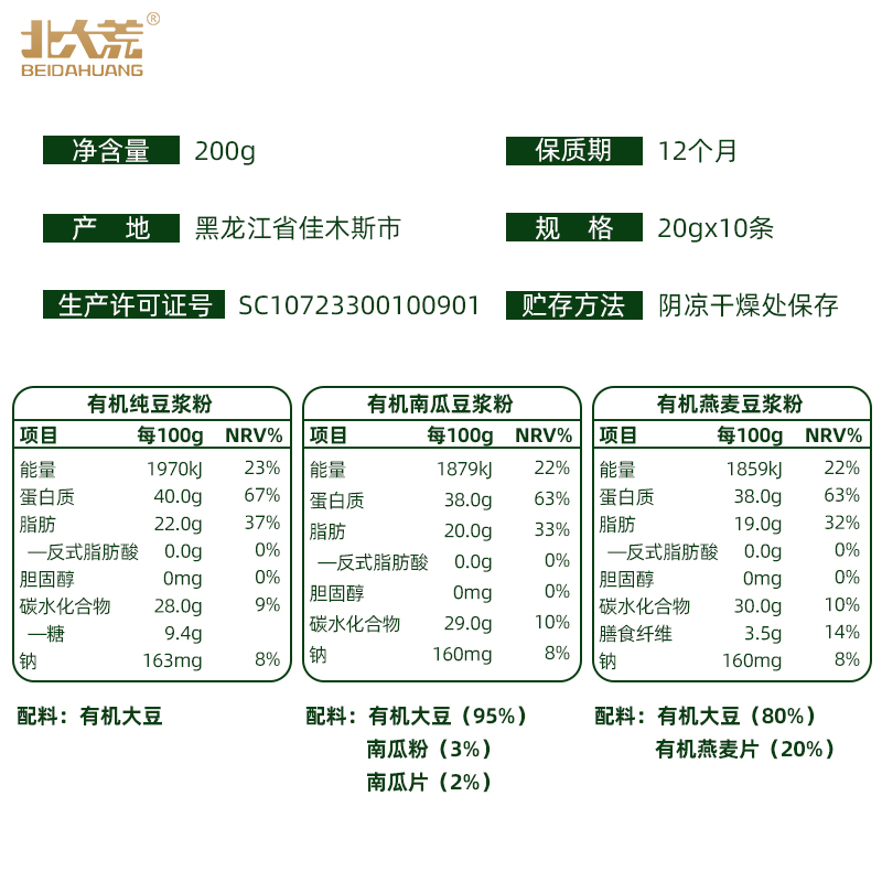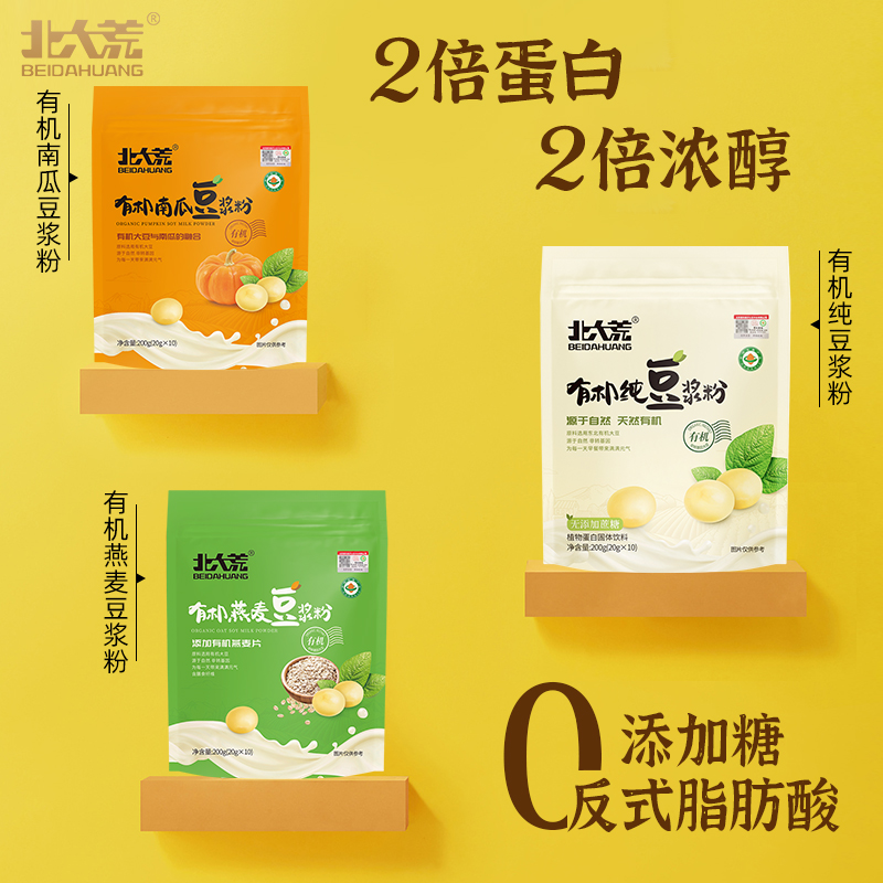 Beidahuang organic pure soymilk powder 200g2 bags of sucrose-free addition of high-protein soybeans non-GMO drinking