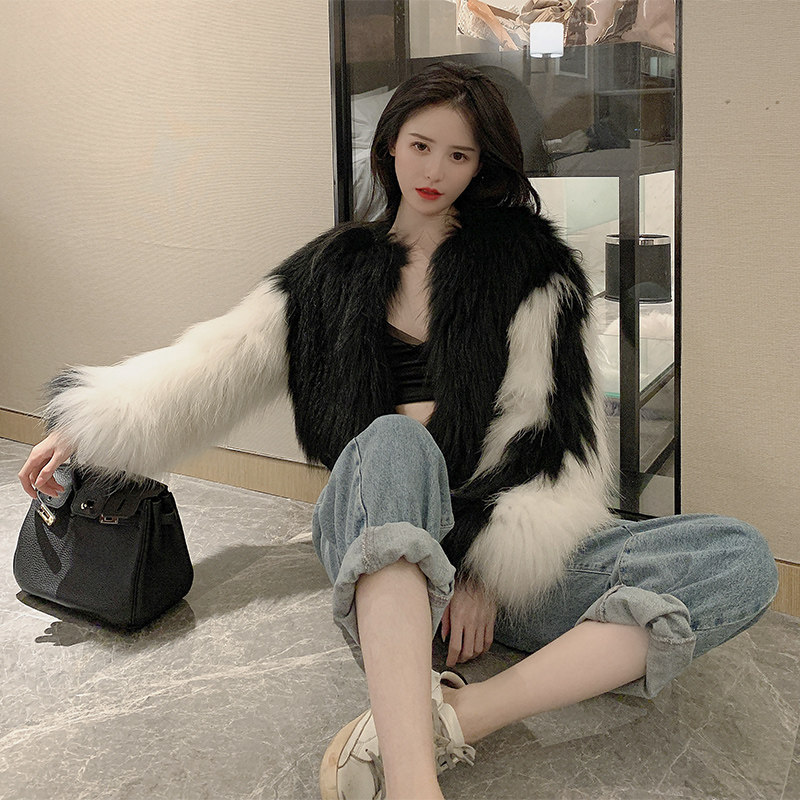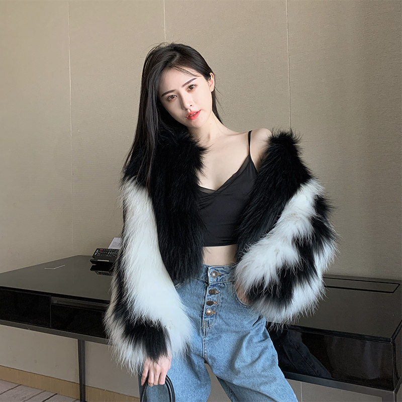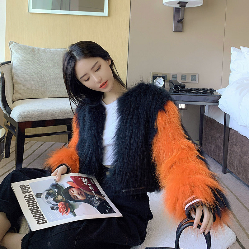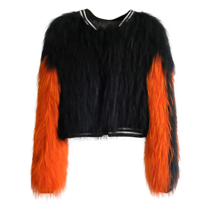 2020 new raccoon hair woven fur coat women's short small casual wind contrast color baseball jacket