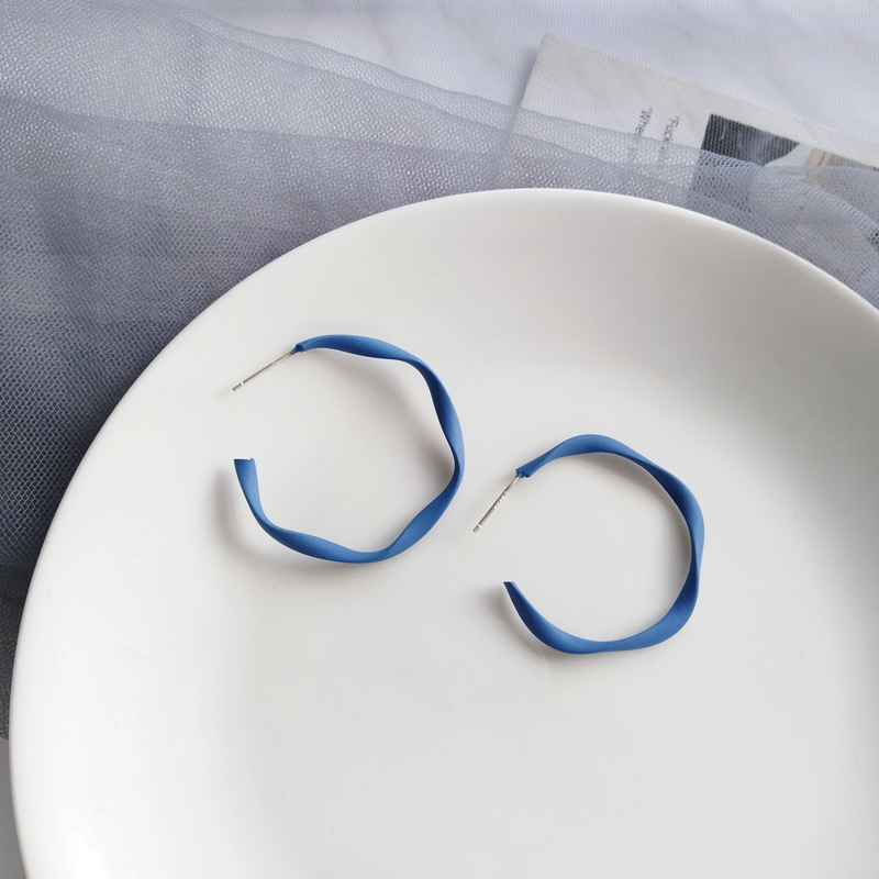 S925 silver needle Korean personality matte C word circle earrings feminine temperament cold wind new trend net red earrings 414