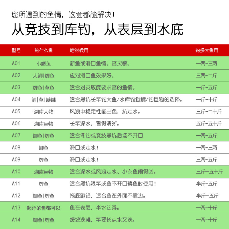 A01 small crucian drift (13 mesh round tail) A02 large crucian drift (15 mesh round tail) A03 carp grass carp drift (19 mesh round tail) A04 (17 mesh large flat tail lake library
