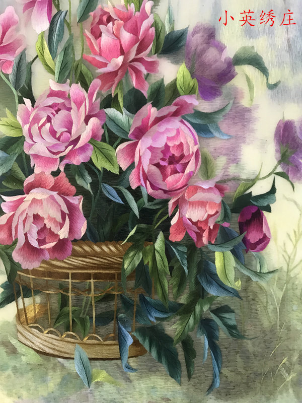 Pure handmade new boutique Suzhou embroidery painting Su embroidery finished product hanging painting Xuanguan decoration painting 4060 static objects flower arrangement