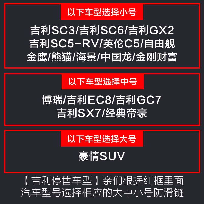 Applicable vision X6 Binrui Borui GE Binyue Emperor GSe Xingyue Jia British C5 International Car tire snow chain