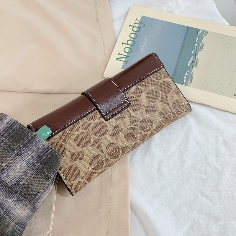 ins wallet female long version 2021 new tide hit color texture multi-position folding student buckle hands with zero money clip