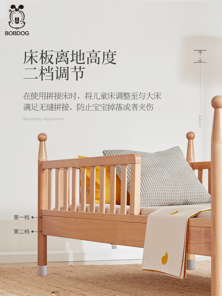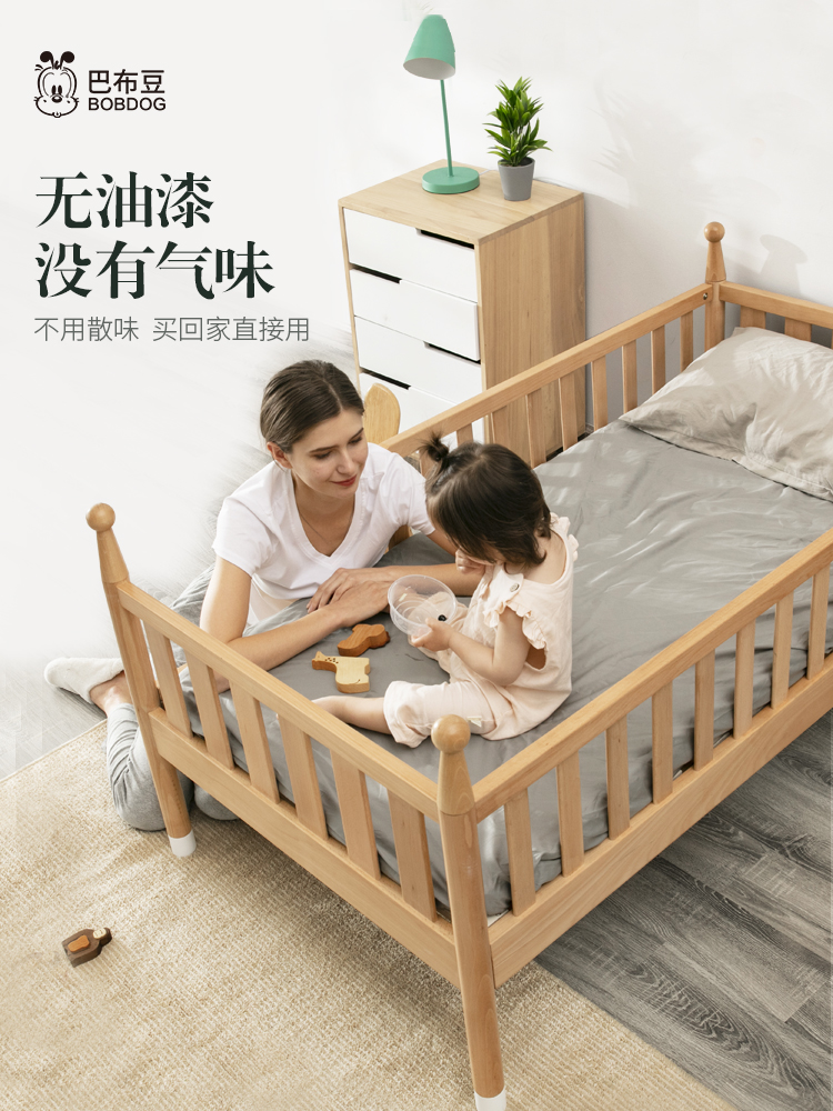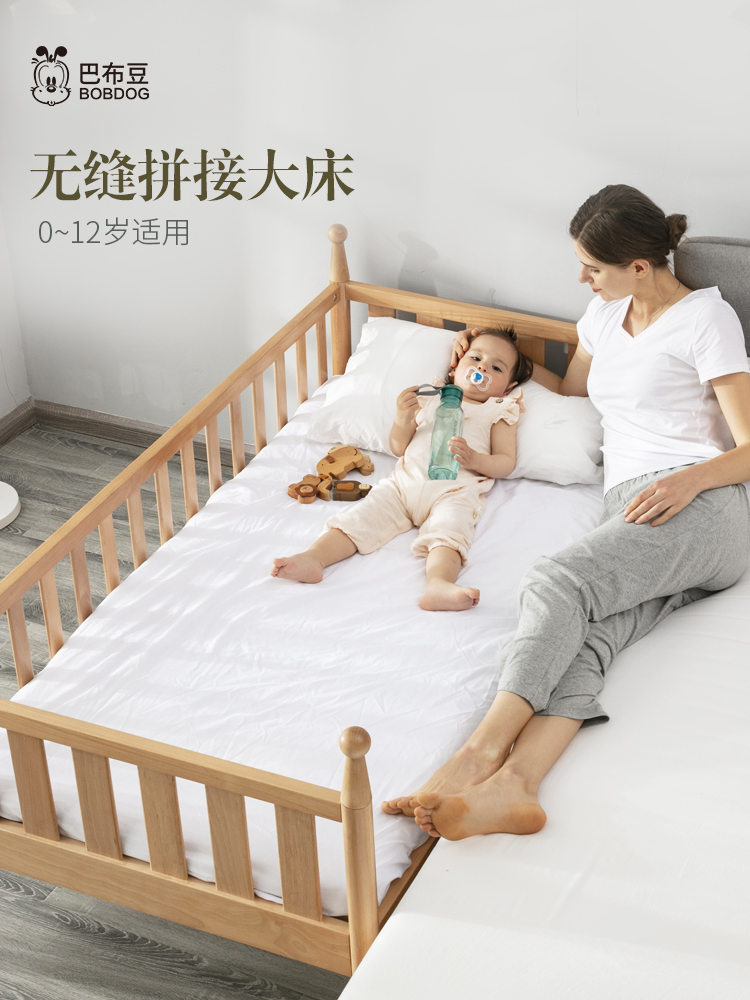 Babu Beech Wood Children's Bed Boy Single Beds Girl Princess Bedside Bed Plus Broadband Guardrails Splicing Large Bed
