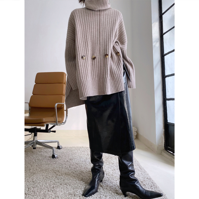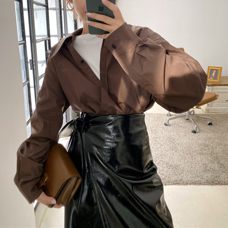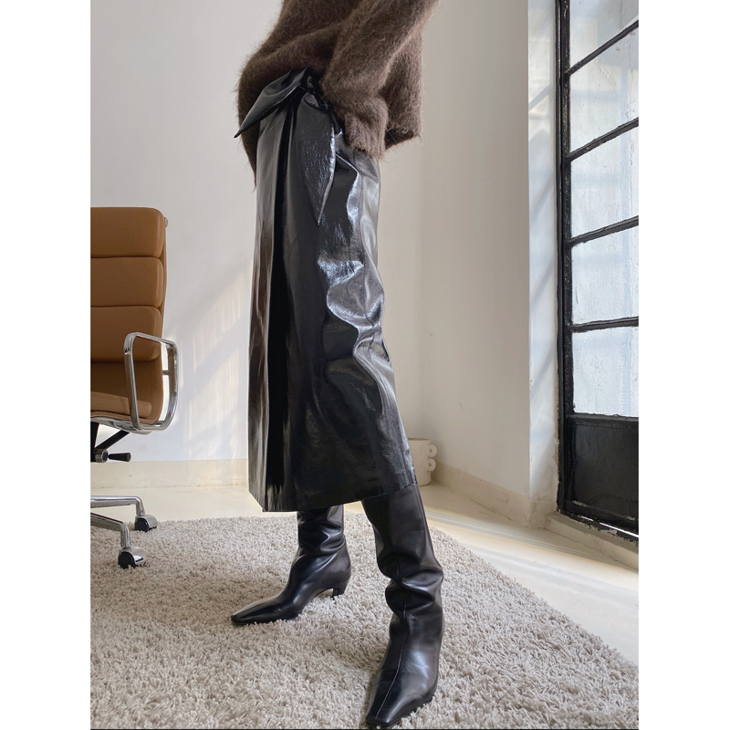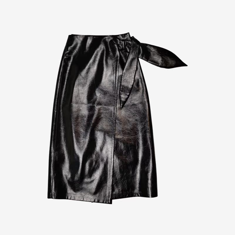 taupe store limited custom plain leather patent leather skirt Thin wrap design sense skirt three-dimensional bow