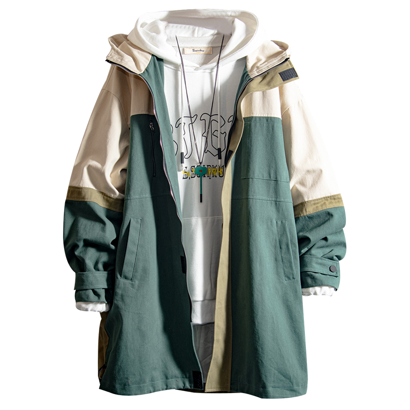 White sugar rose 2022 color matching medium and long version of the windbreaker pie to overcome the male Korean version of the loose spring and autumn jacket tactical function tide