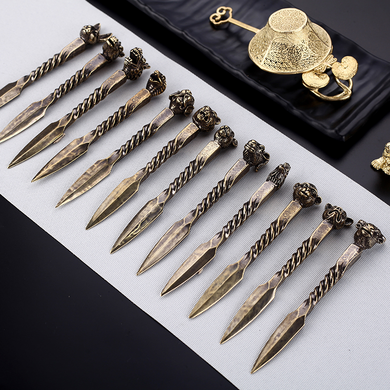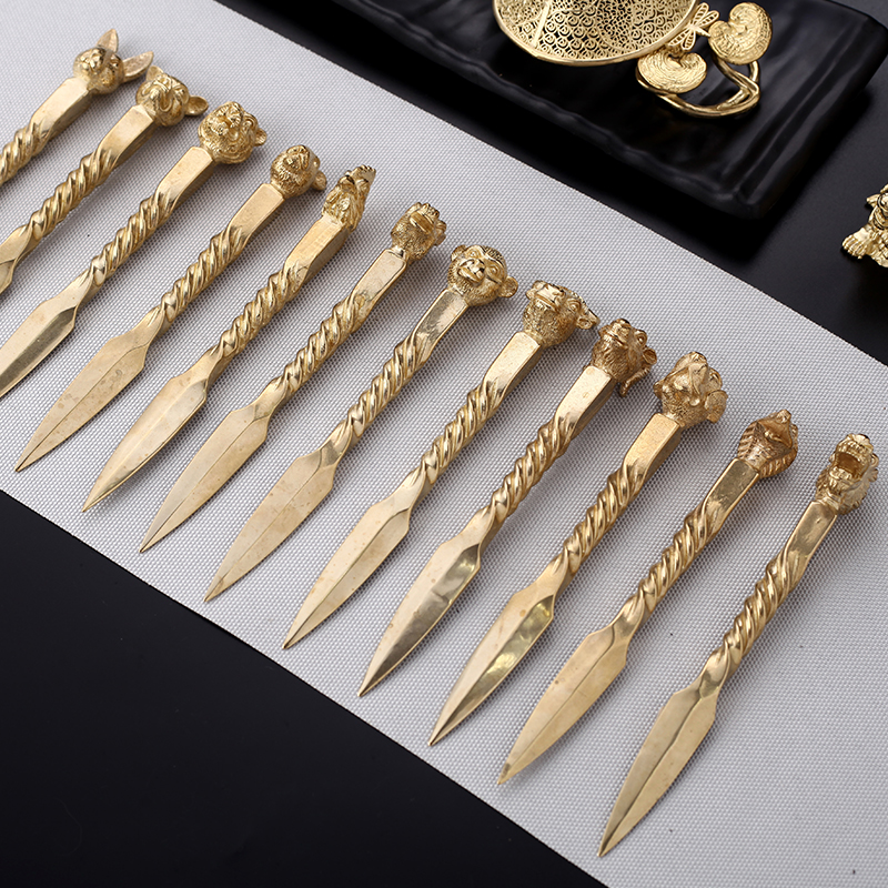 Zodiac Zodiac Pure Copper Tea Knife Tea Set Accessories Pu'er Open Tea Knife Pure Handmade Black Tea Special Tea Needle Tea Cone Kung Fu