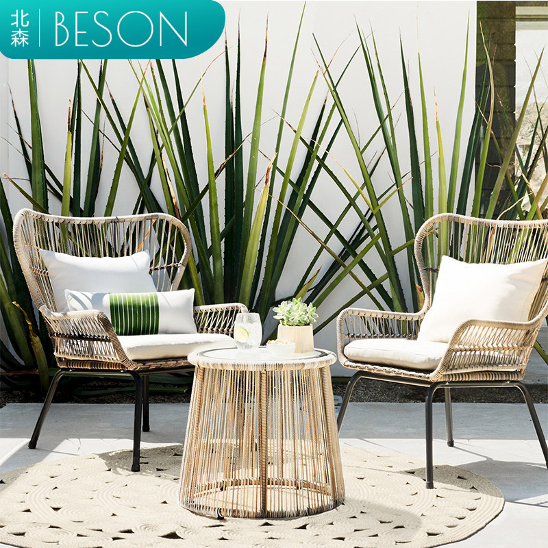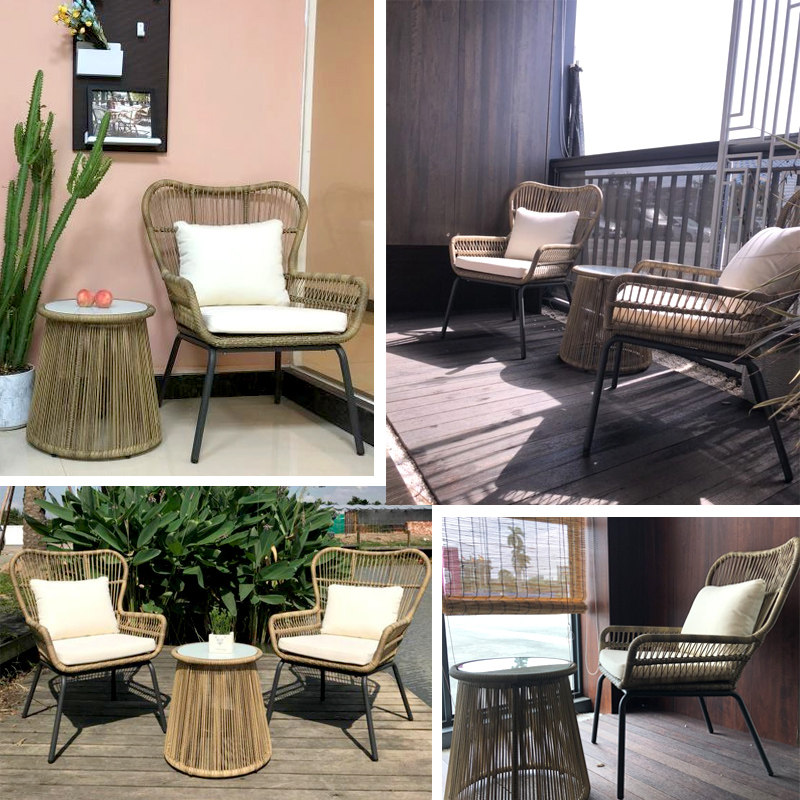 Balcony table and chair three-piece set designer Nordic outdoor courtyard patio ins outdoor leisure rattan chair small coffee table