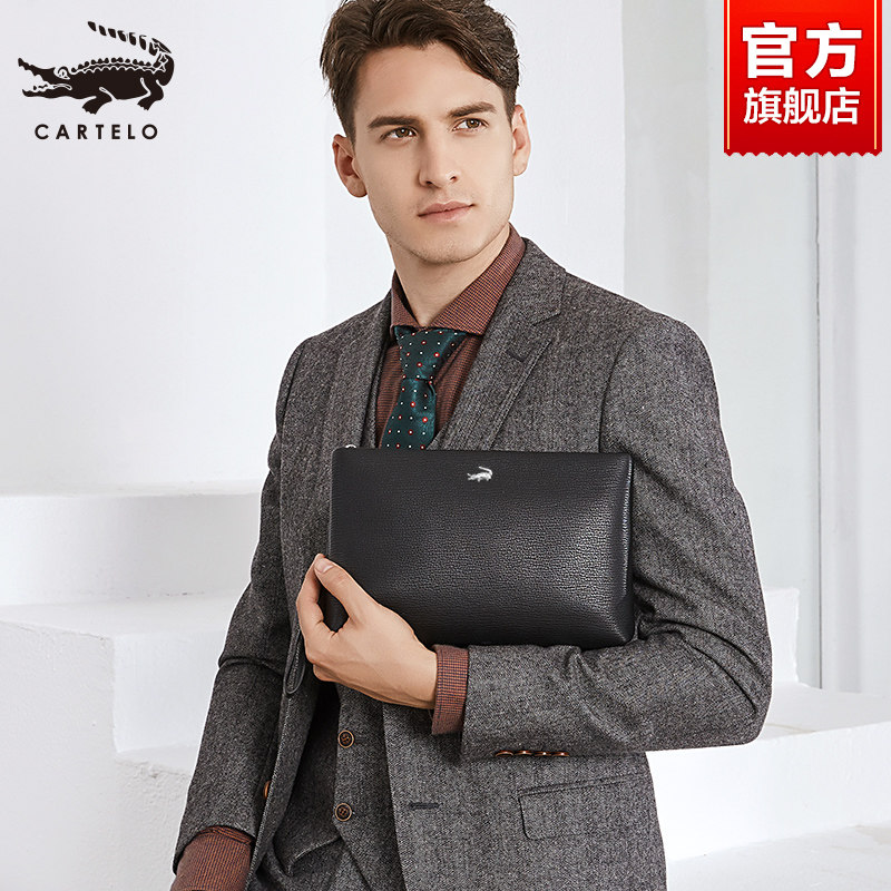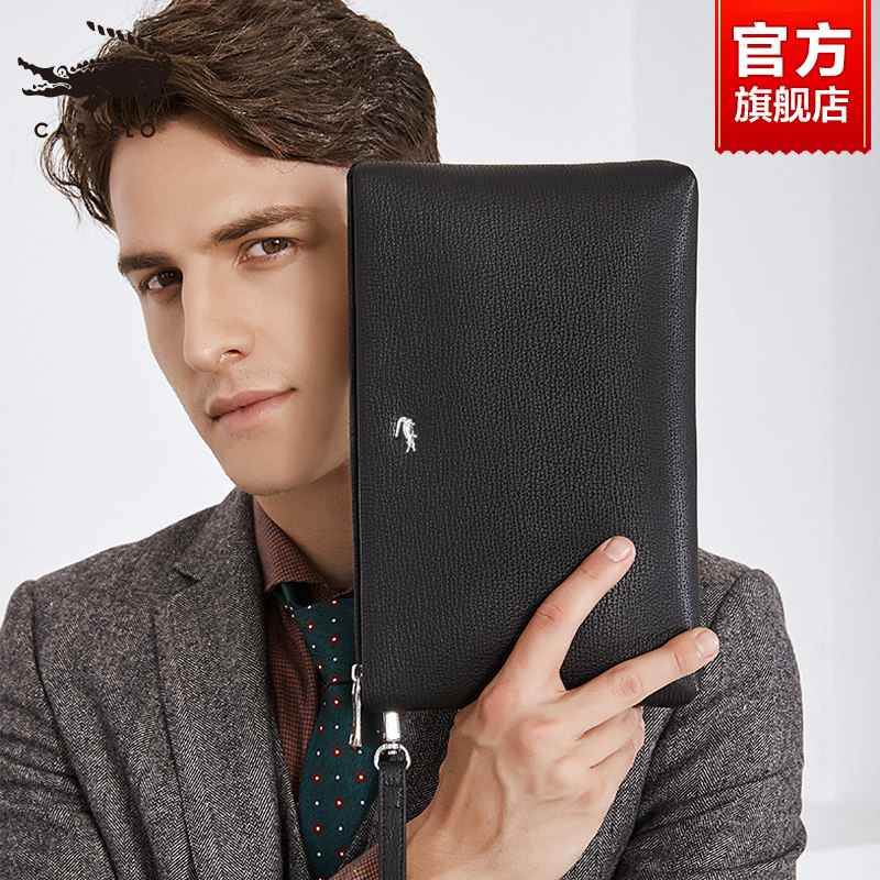 Crocodile Hand Grab Bag Men Genuine Leather Fashion Tide Large Capacity Clip Wrapping Bag Letter Enveloping Men's Handbags Korean Version Hand Grip Bag