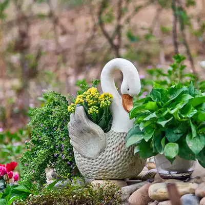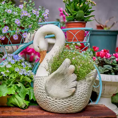 Animal flowerpots Nordic minimalist modern garden decoration swan ornaments courtyard creative Cornetto meat Golden kregory flower pots