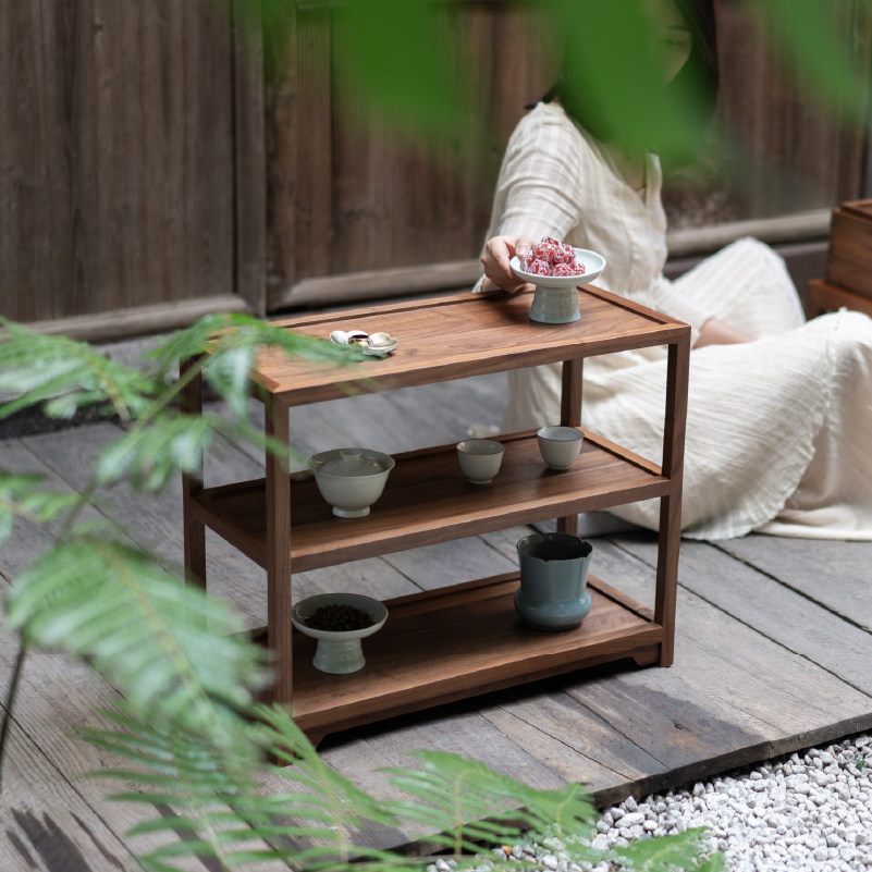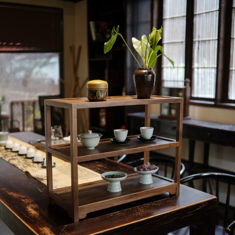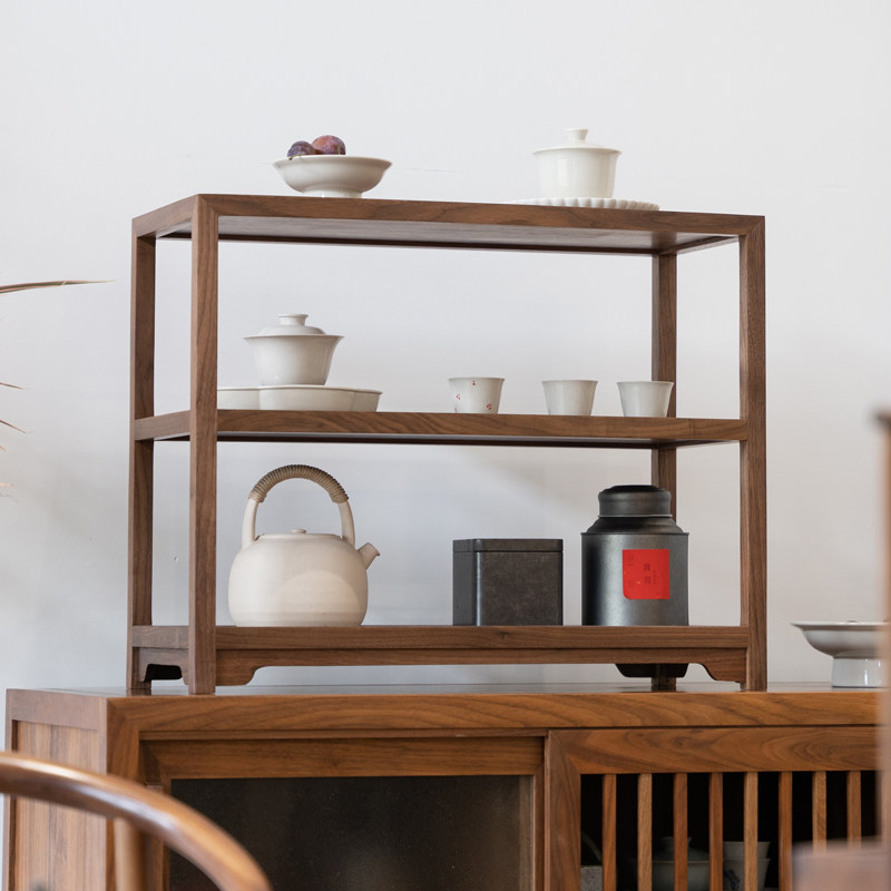 New Chinese solid wood desktop porcelain rack double-layer storage rack black walnut tea room decoration tea furniture storage rack