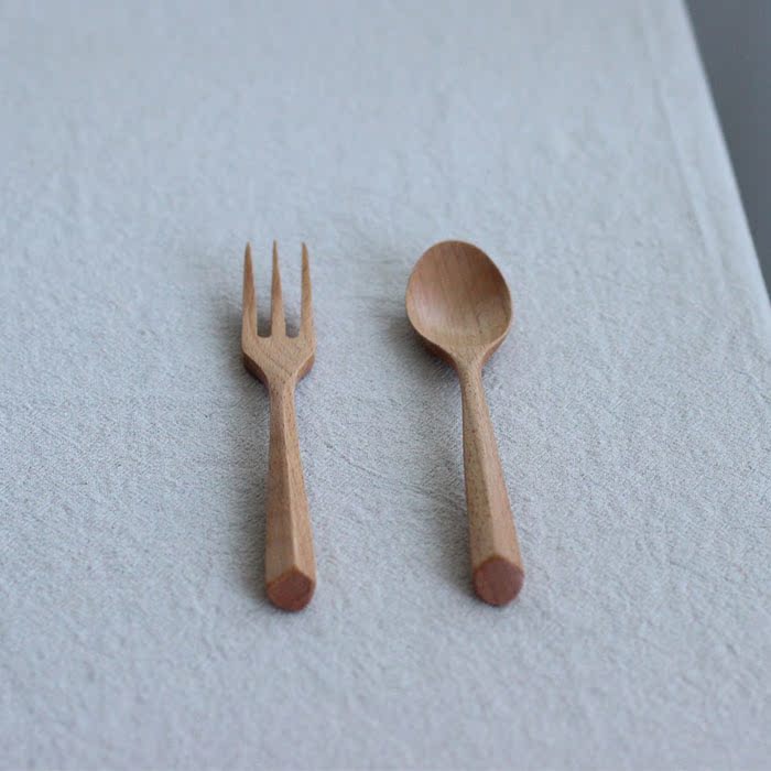Rain Flower Stone Miscellaneous Beech Wood Soup Spoon Fruit Fork Salad Spoon