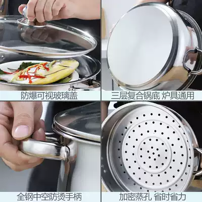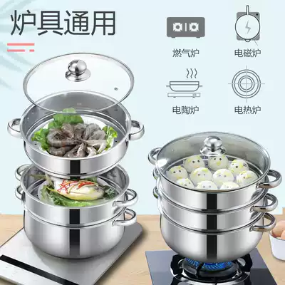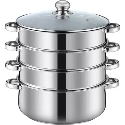 34CM four-layer thickened bottom stainless steel steamer Household large 3-layer steamed steamed bun cage steamed bun steamer steamed steamed bun pot