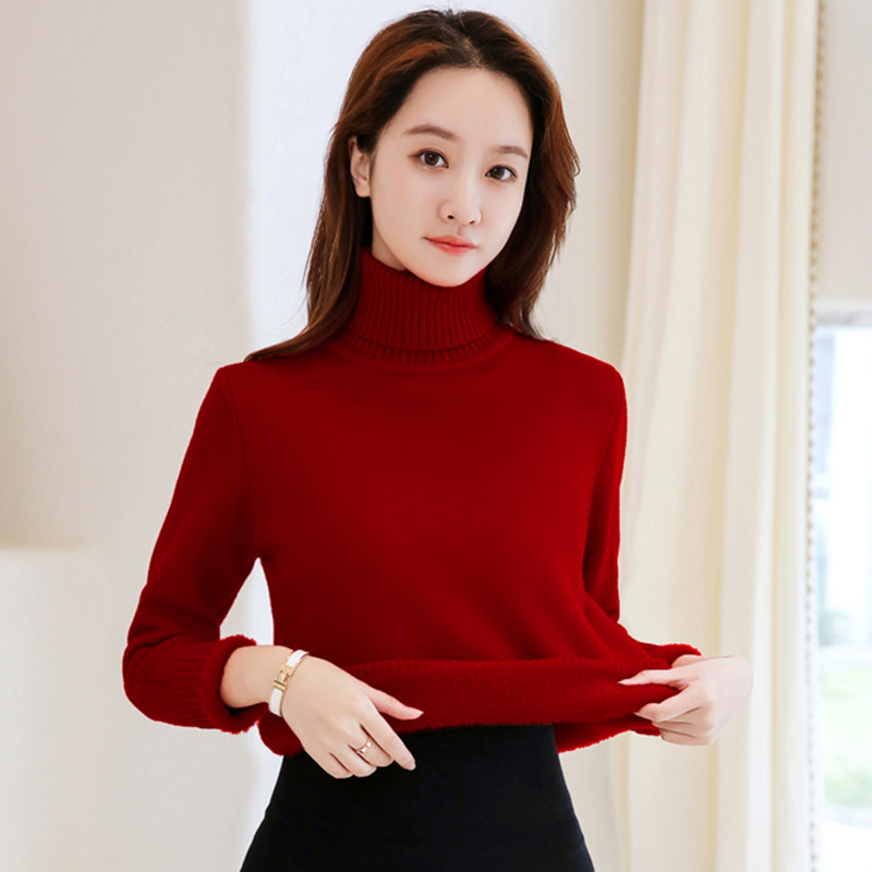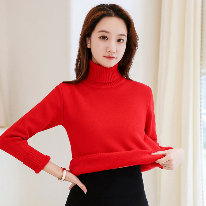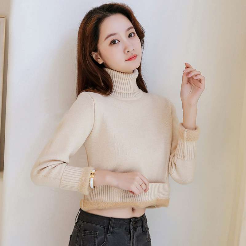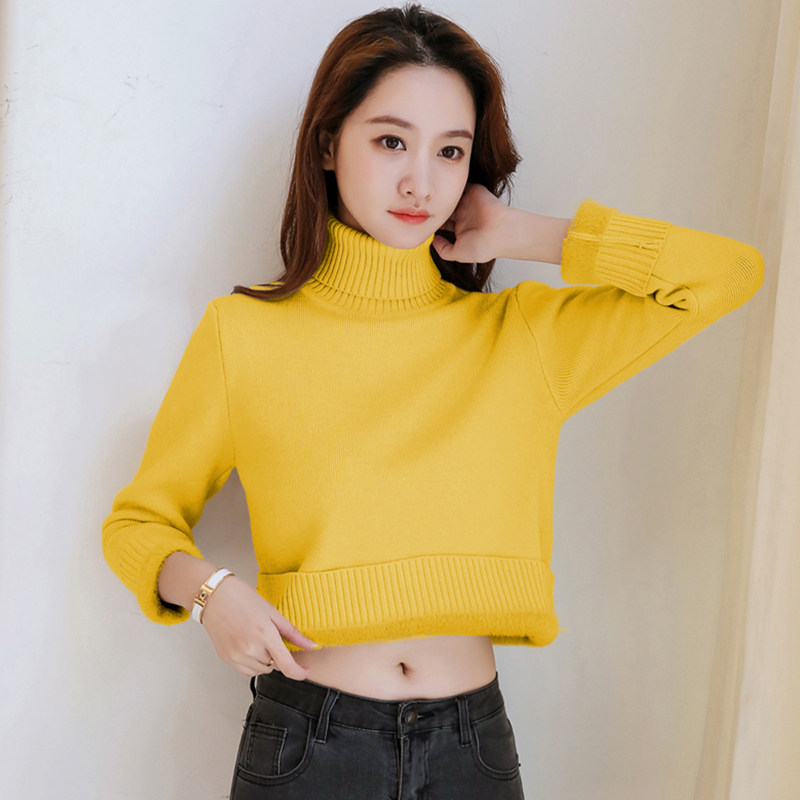 Velvet small man turtleneck sweater women wear autumn and winter 2020 new short Western style thickened knitted base shirt