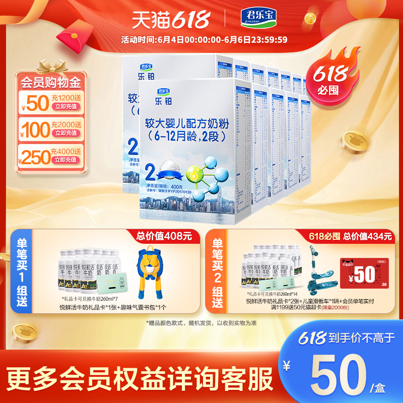 Jun Lebao Flagship Store Music Platinum 2 Segment Larger Baby Formula Milk Powder 6-12 Months Milk Powder 400g * 12 Box
