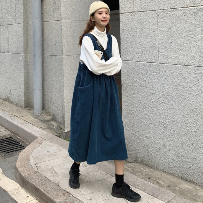 Foreign Pie Green Cuddle Skirt White High Collar Undershirt S Ocean Pie Dress White High Collar Undershirt M Ocean Pie Green Cuddling Bag Skirt White High Collar Bottom Shirt L Foreign Pie Green Cuddling Bag Skirt White
